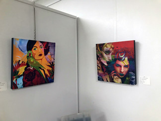 The opening reception for my solo art show, The Power of Portraits, on September 4th, was lively and enjoyable despite the triple digit, soggy heat. But as the president of the gallery said 'Nothing but the hottest day of the year would do for the hot art hanging on the walls.' Awe, shucks!